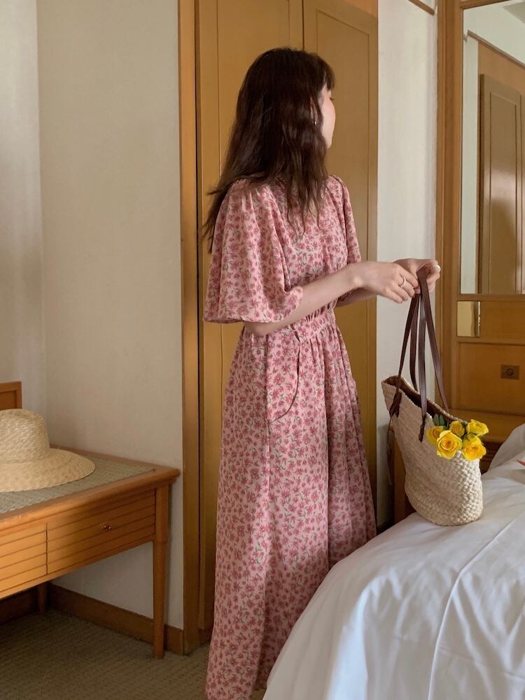 韓国ファッションNEW夏服Vネックフローラルスカート ロングストラップ ウェストミニ ワンピースワンピースレディース 大人ガーリー スウィート キュート カジュアル 夏物 花柄 長めのストラップ ウエスト muzly5315859317 | Neatly