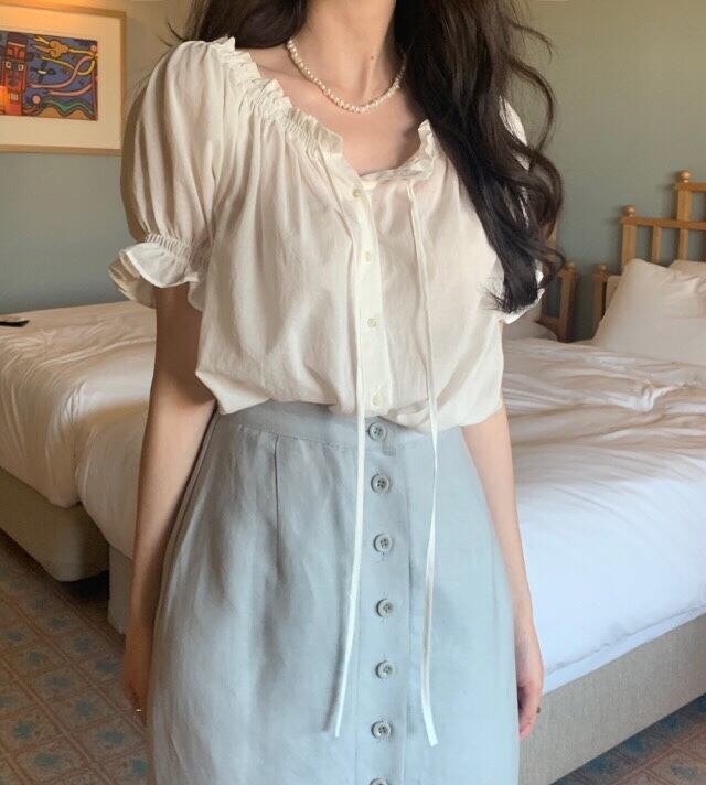 韓国ファッションNEW夏服シャツ トップス スタンダードハイウェストウェストスカート レディース レトロ 大人ガーリー スウィート キュート カジュアル 夏物 ウエスト muzly2792497739 | Neatly