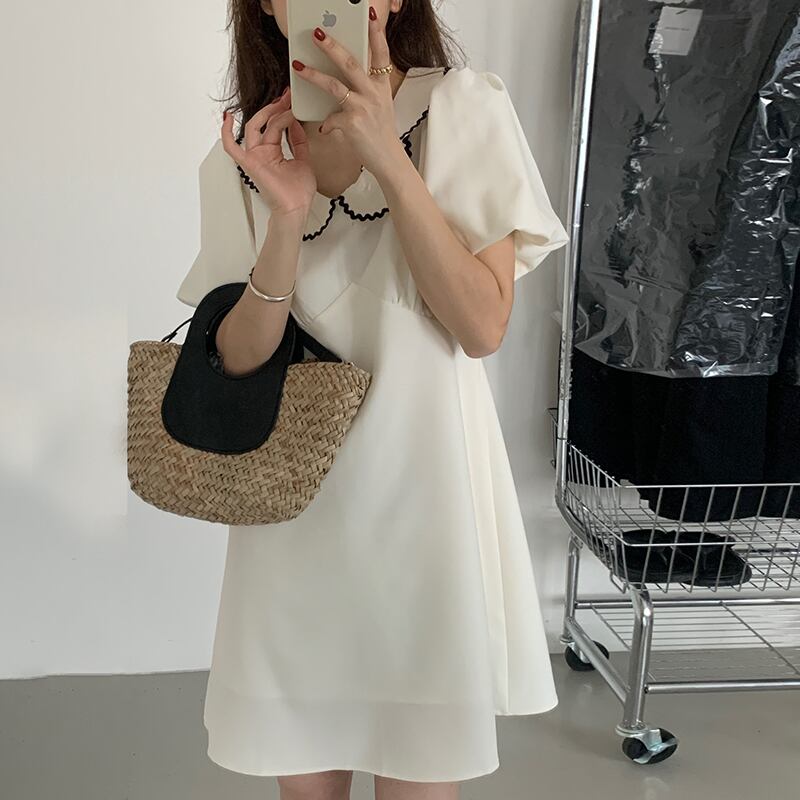韓国ファッション夏服カラーショートスカート ウェスト薄手半袖スリーブワンピースレディース ハーフスリーブ 大人ガーリー スウィート キュート カジュアル 夏物 ウエスト muzly63777827359 | Neatly