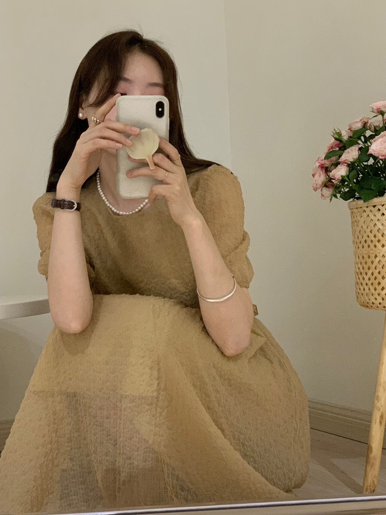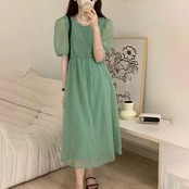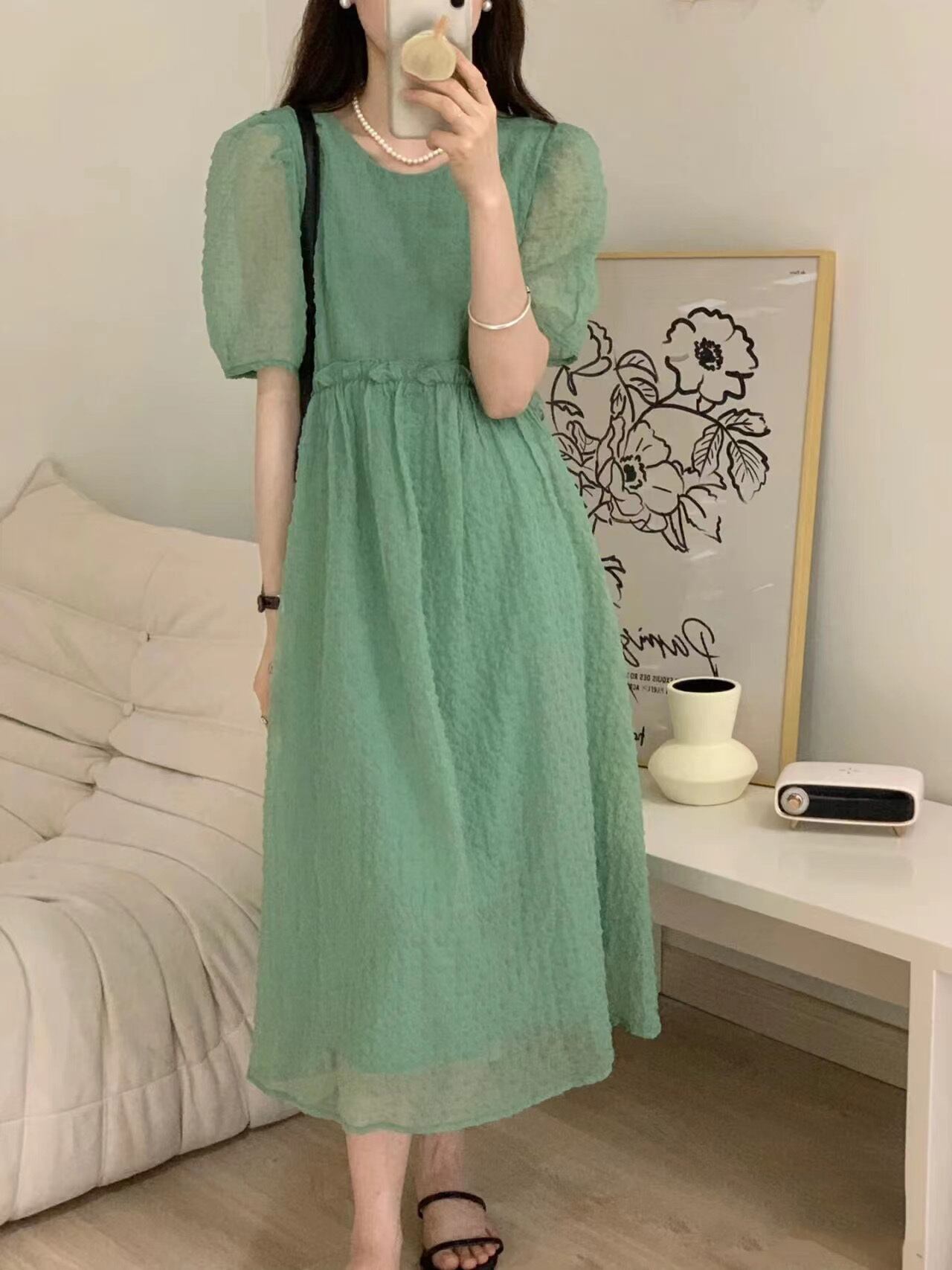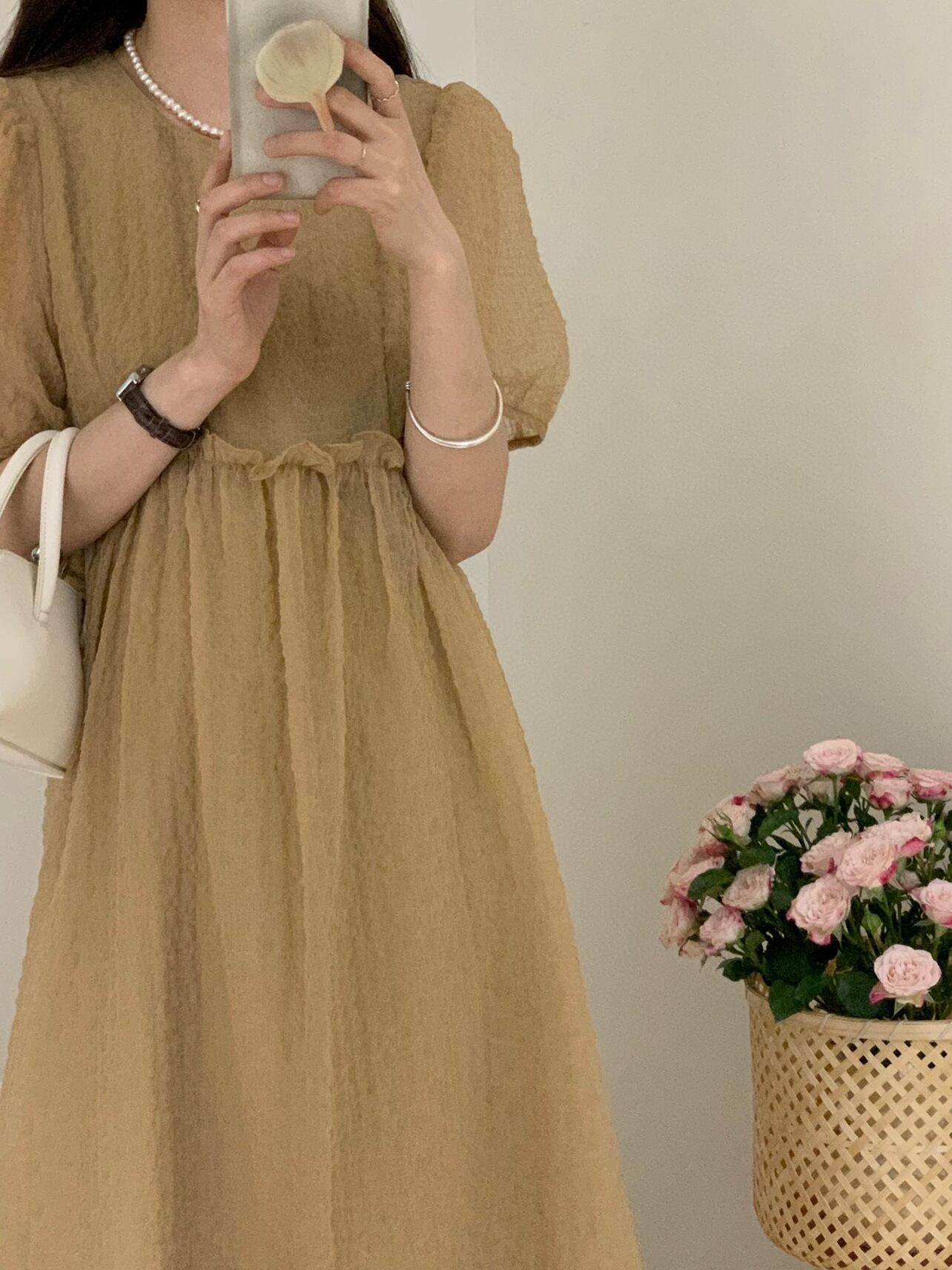 韓国ファッション夏服ラウンドネックスカート ハイウェストウェストロング薄手半袖スリーブワンピースレディース ショート ハーフスリーブ 大人ガーリー スウィート キュート カジュアル 夏物 Oネック ウエスト muzly27961911212 | Neatly