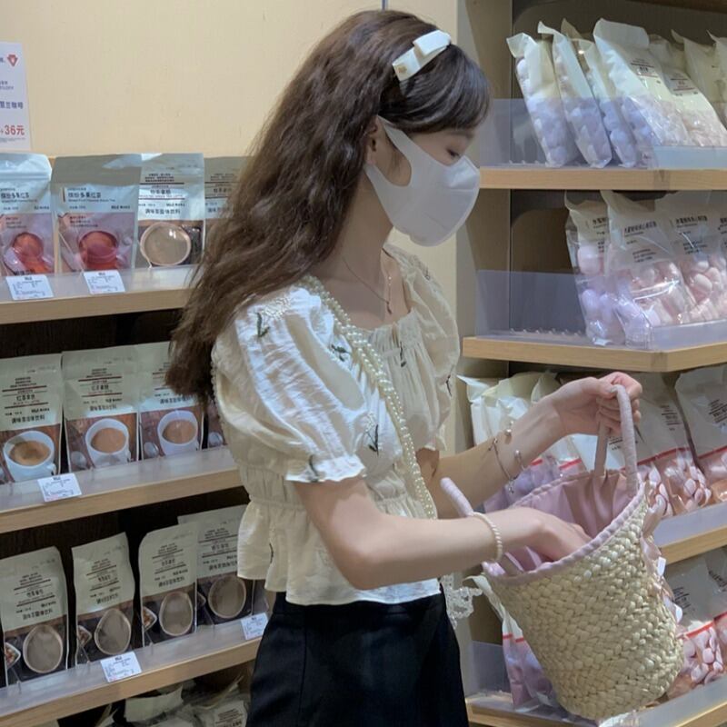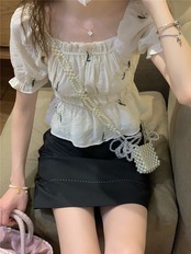 韓国ファッション夏服カラーショートトップス プリーツウェストシャツ レディース 大人ガーリー スウィート キュート カジュアル 夏物 スクウェア ウエスト muzly85921152533 | Neatly