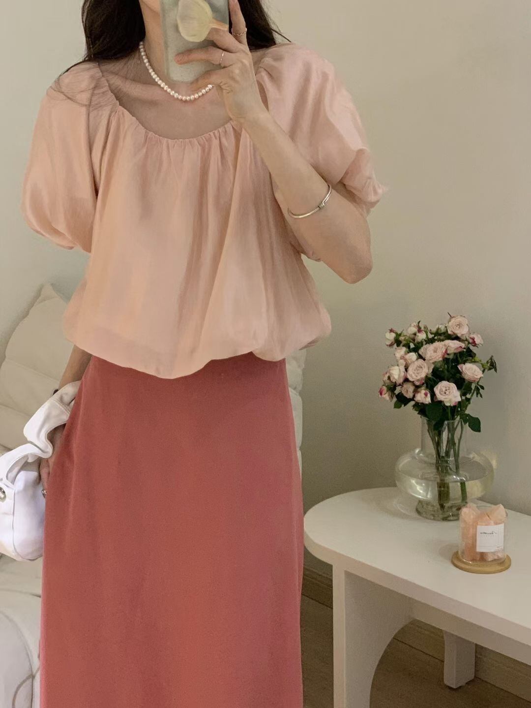 NEW夏服ラウンドネックシャツ ハイウェストウェストロングスカート レディース 大人ガーリー スウィート キュート カジュアル 夏物 Oネック ウエスト muzly25520304169 | Neatly