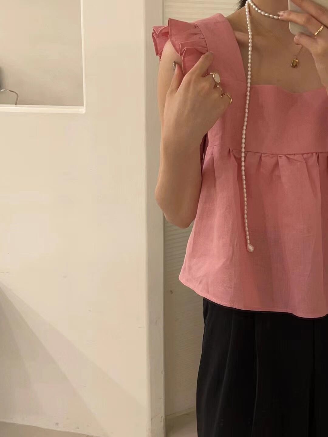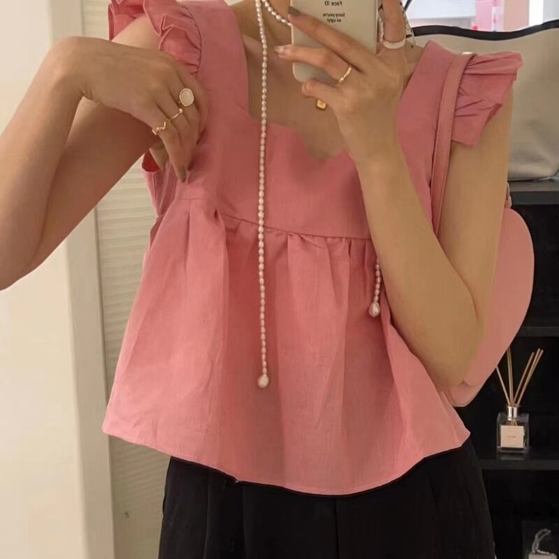 韓国ファッション夏服スタンダードカラーショートトップス ルーズスリーブシャツ レディース レトロ 大人ガーリー スウィート キュート カジュアル 夏物 スクウェア muzly95019055008 | Neatly
