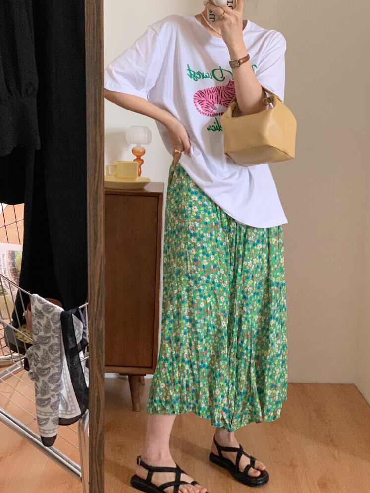 色:グレーのTシャツ,白いTシャツ,紫のスカート,緑のスカート