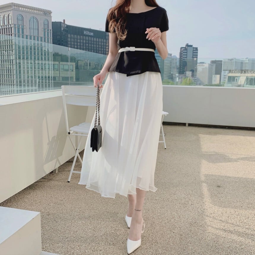色:ブラックトップ,黒スカート,ベージュトップ,ベージュのスカート,白いスカート,フラワースカート
