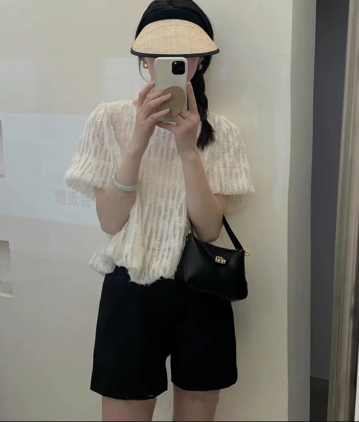 韓国ファッションNEW夏服ラウンドネックシャツ スタンダードハイウェストウェストカジュアル薄手ショーツ レトロ 大人ガーリー スウィート キュート 夏物 Oネック ウエスト muzly54112164783 | Neatly