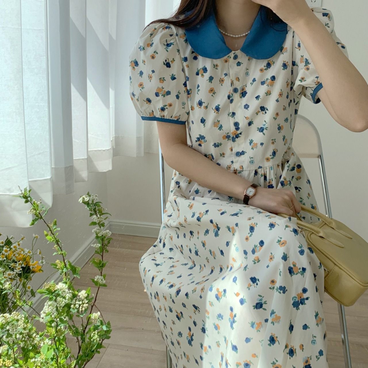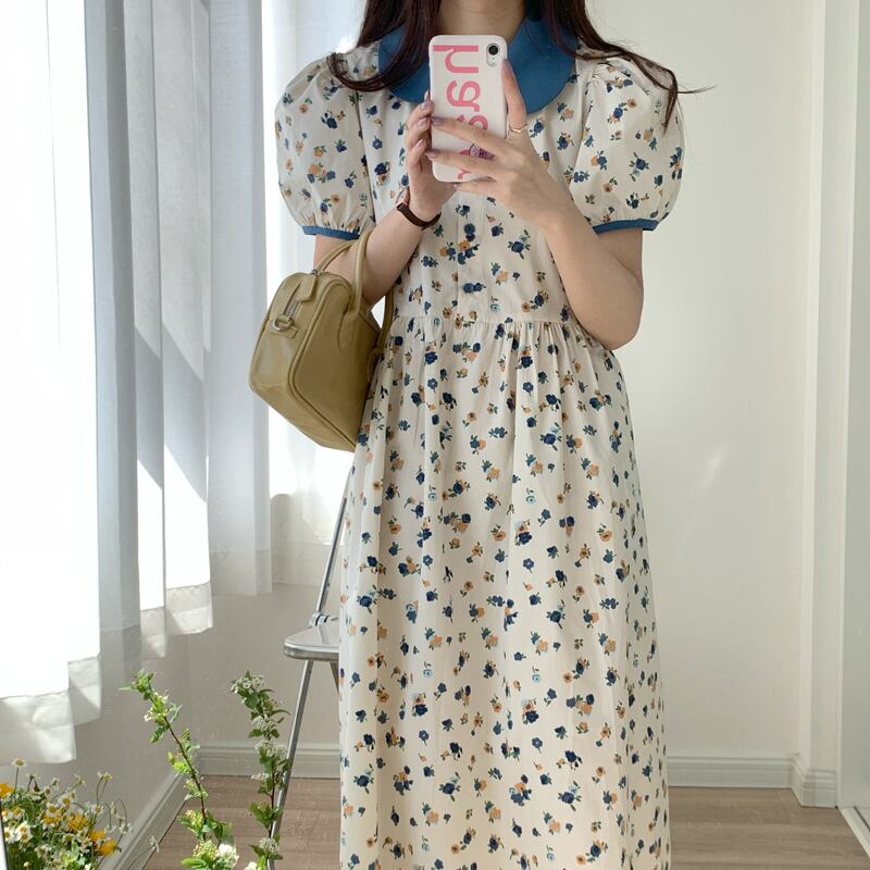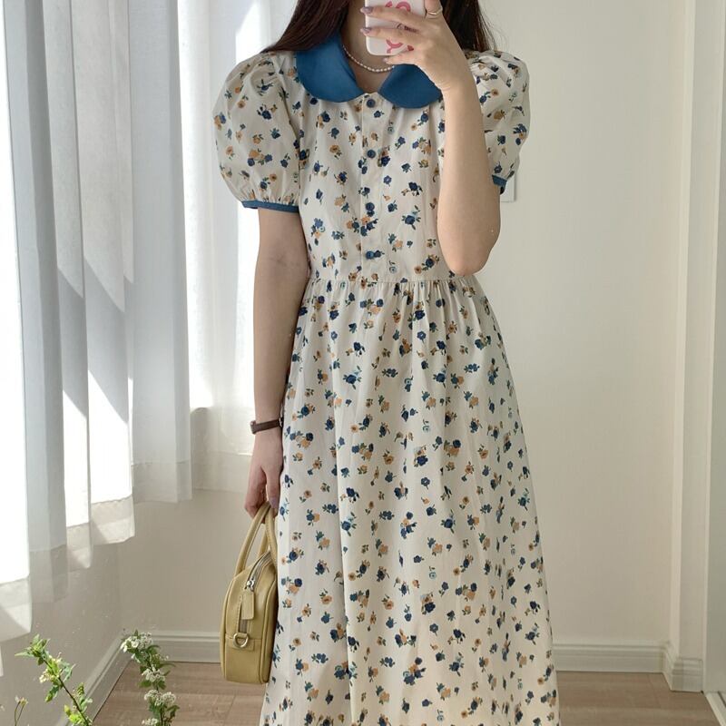 韓国ファッション夏服カラーフローラルスカート ウェストミニ ワンピースワンピース 大人ガーリー スウィート キュート カジュアル 夏物 花柄 ウエスト ミドル丈 muzly18367610122 | Neatly