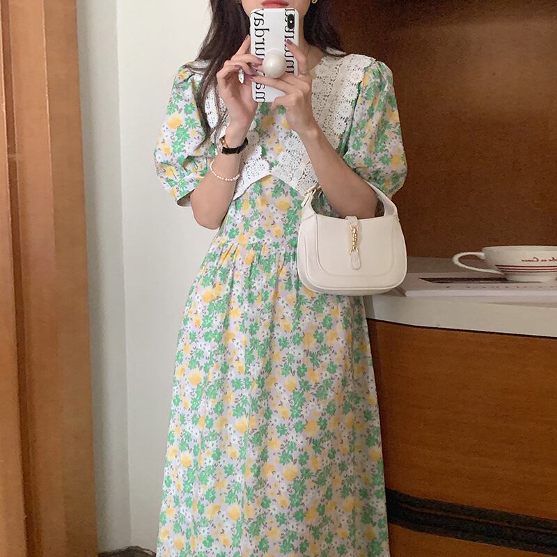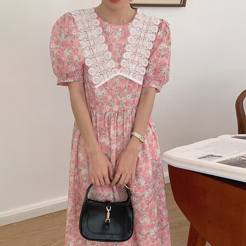 韓国ファッション夏服カラースカート ウェストフローラルミニ ワンピースワンピース 大人ガーリー スウィート キュート カジュアル 夏物 花柄 フラワーデザイン ウエスト ミドル丈 muzly21197171322 | Neatly
