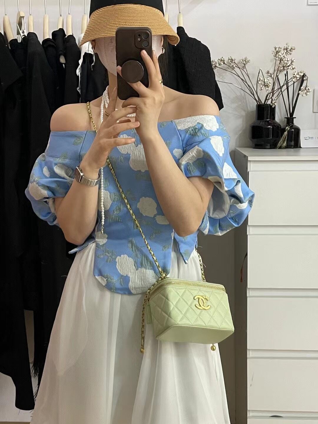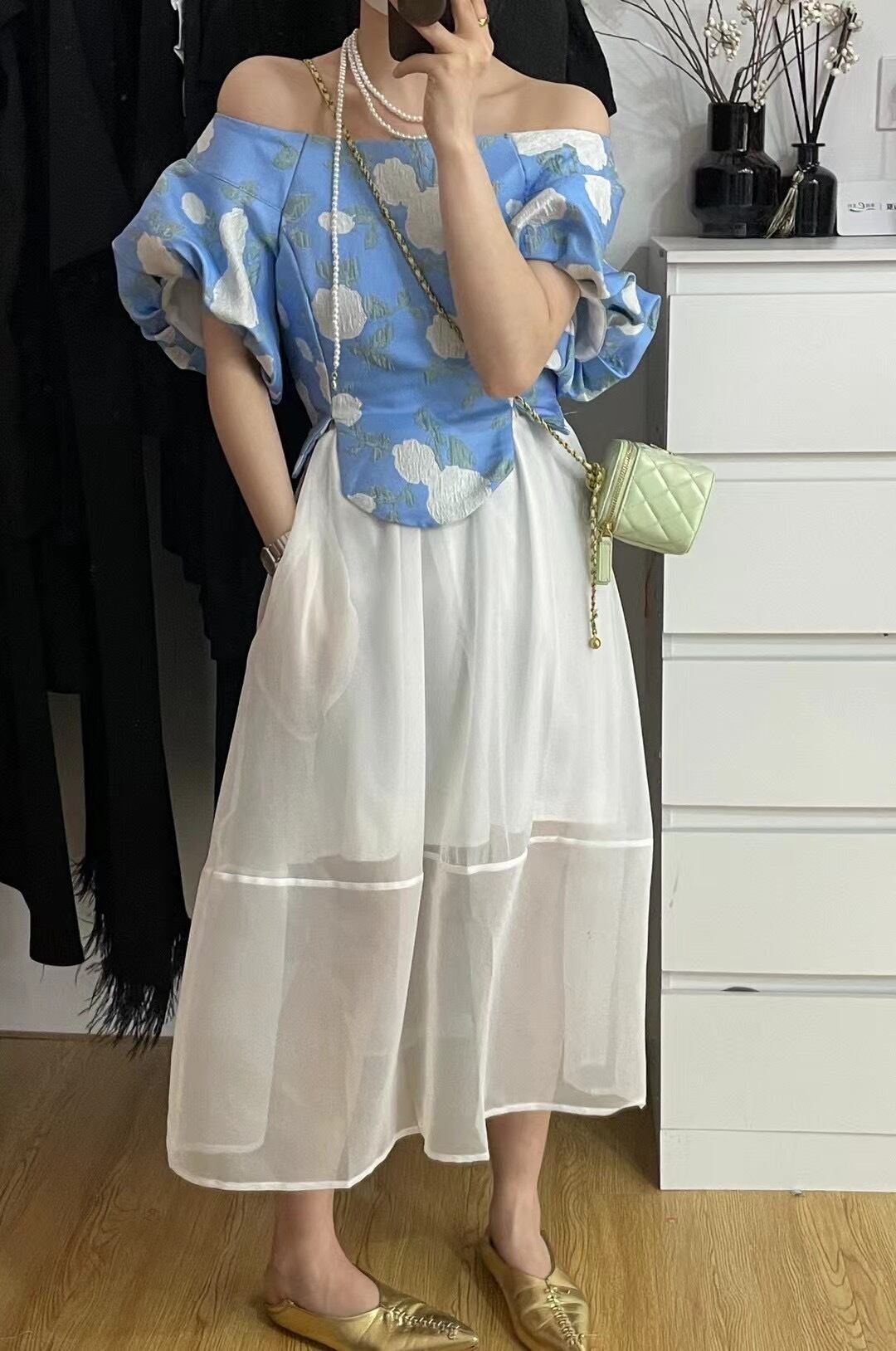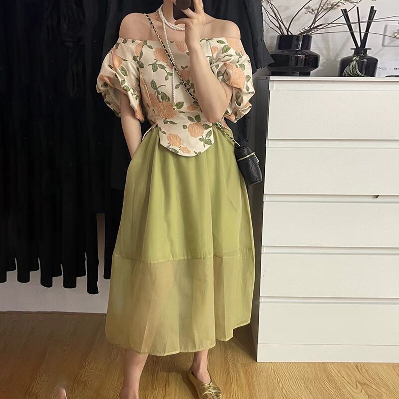 色:白いスカート,緑のスカート,青いシャツ,アプリコットシャツ