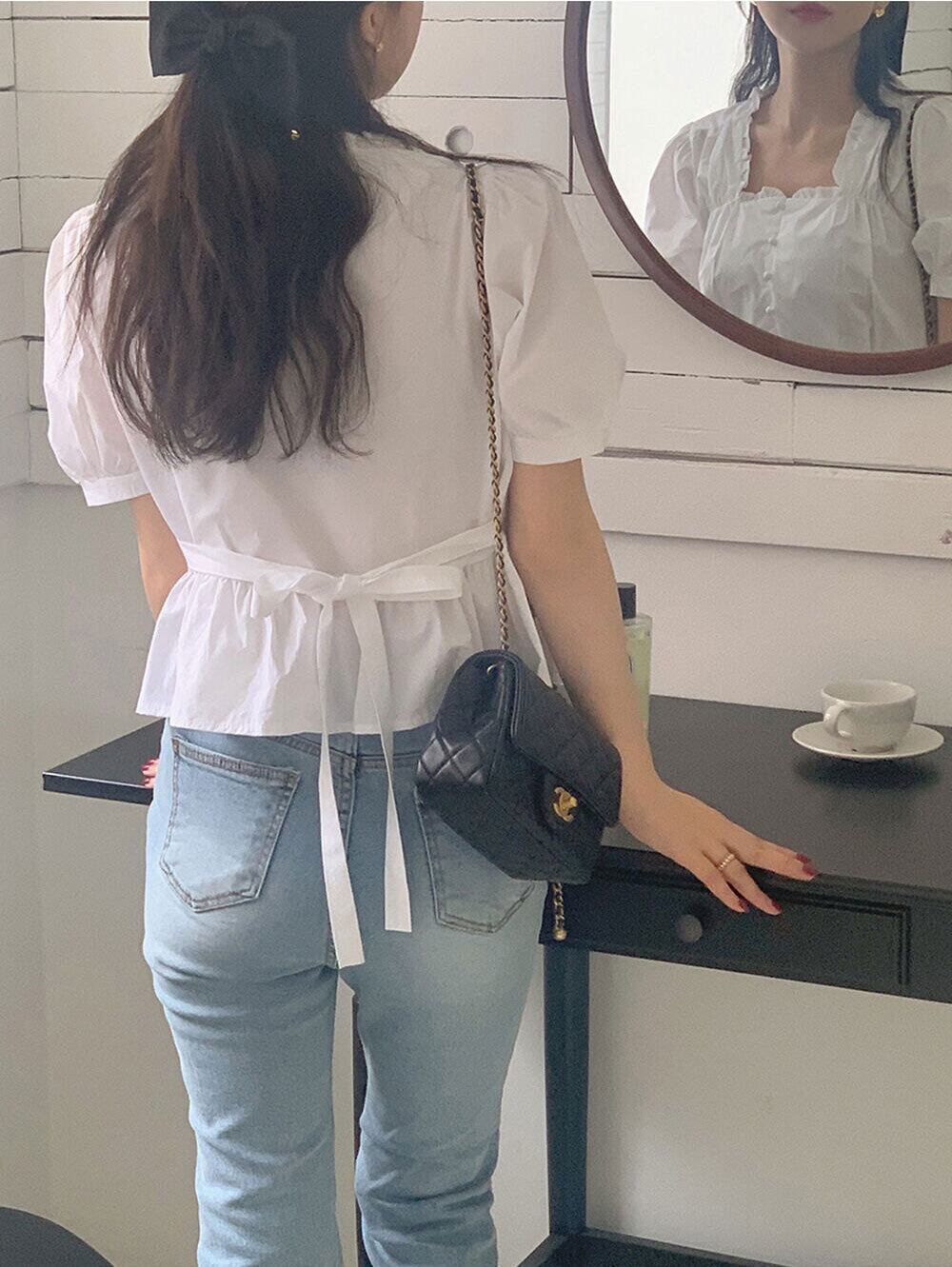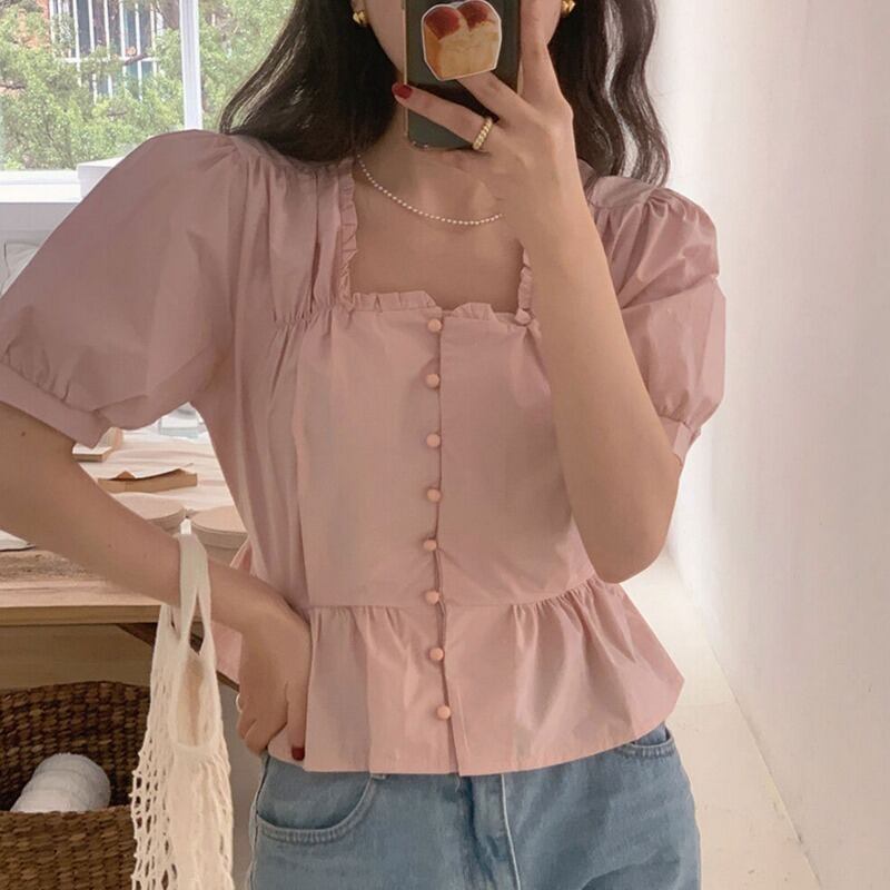 韓国ファッション夏服スタンダードショートシャツ トップス ウェスト レトロ 大人ガーリー スウィート キュート カジュアル 夏物 スクウェア ウエスト muzly46995420356 | Neatly