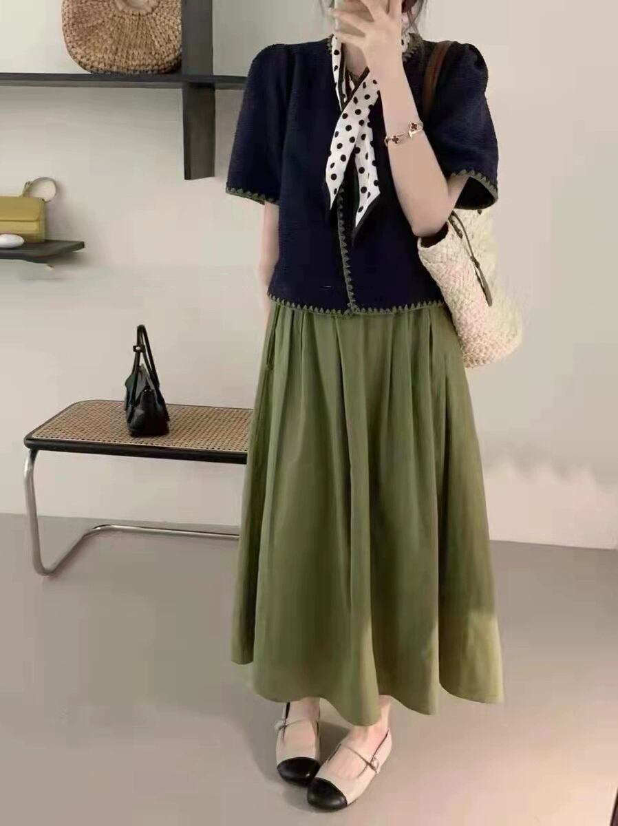 韓国ファッションNEW夏服ラウンドネックシャツ ハイウェストウェストプリーツスカート レディース 大人ガーリー スウィート キュート カジュアル 夏物 Oネック ウエスト ミドル丈 muzly45767273452 | Neatly