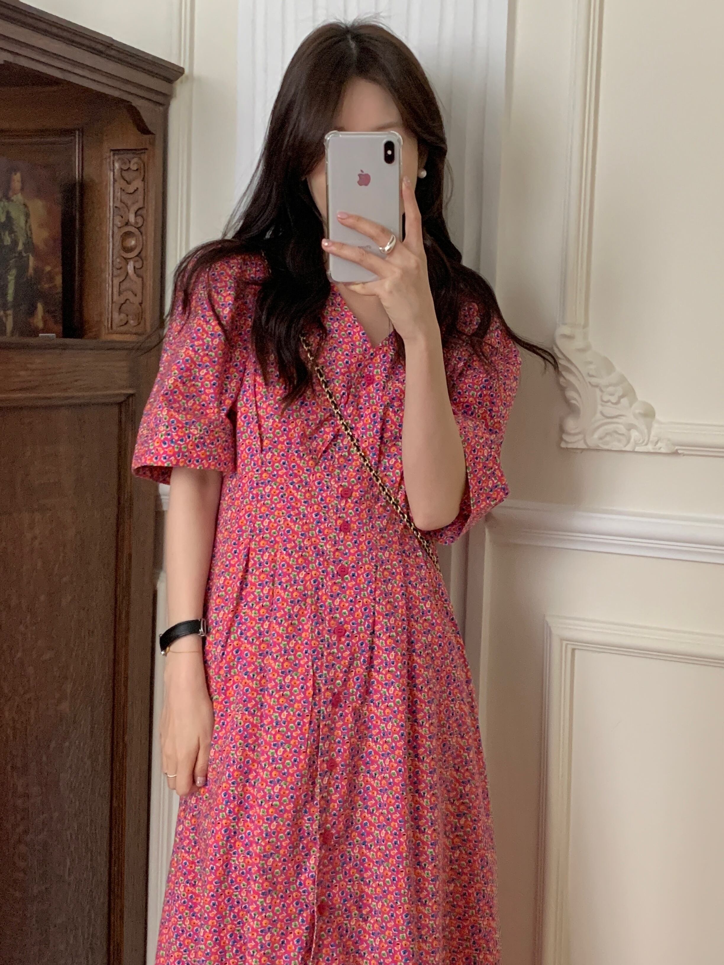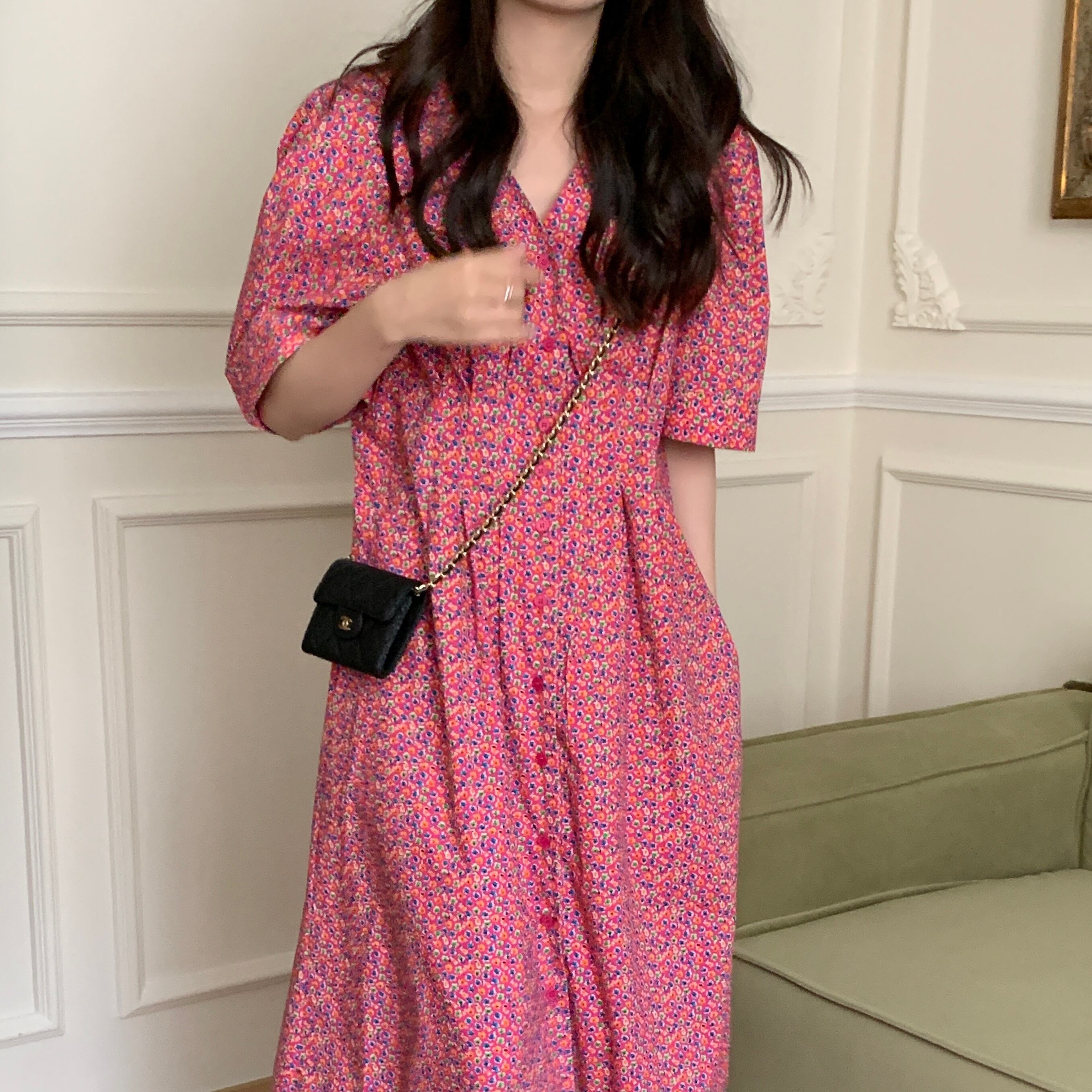 韓国ファッションNEW夏服スタンダードVネックフローラルスカート 薄手ミニ ワンピースワンピース レトロ 大人ガーリー スウィート キュート カジュアル 夏物 花柄 ウエスト ミドル丈 muzly18356615830 | Neatly