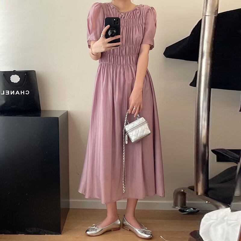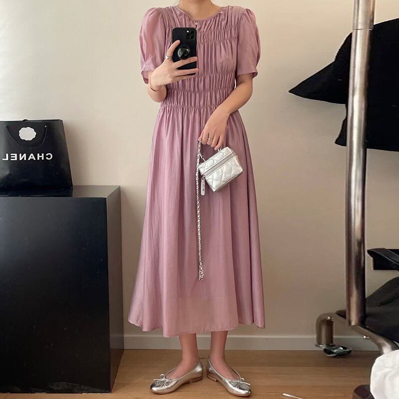 韓国ファッション夏服スタイルラウンドネックロングスカート ウェスト薄手ミニ ワンピースワンピースレディース 夏物 Oネック フラワーデザイン ウエスト muzly62080116518 | Neatly