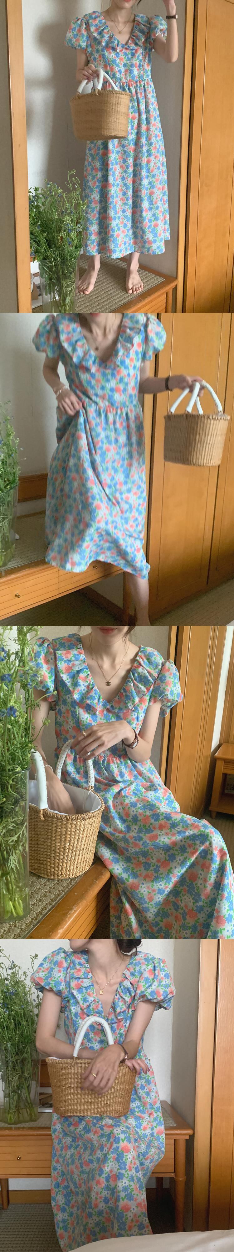 韓国ファッションNEW夏服Vネックフローラルスカート ミニ ワンピースワンピースレディース 大人ガーリー スウィート キュート カジュアル 夏物 花柄 ウエスト ミドル丈 muzly86181769319 | Neatly