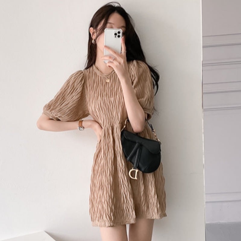 韓国ファッション夏服ラウンドネックスカート ウェストミニ ワンピースワンピースレディース 大人ガーリー スウィート キュート カジュアル 夏物 Oネック ウエスト muzly850324647 | Neatly
