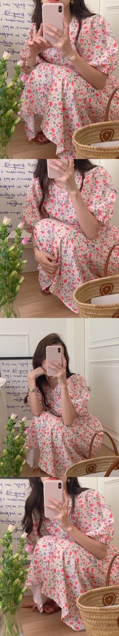 韓国ファッション夏服フローラルワンピースウェストスリムラウンドネックミニ ワンピースレディース 大人ガーリー スウィート キュート カジュアル 夏物 花柄 Oネック ウエスト ミドル丈 muzly78255897321 | Neatly